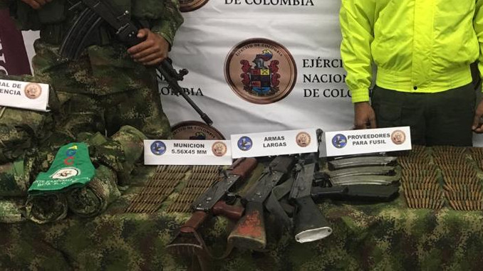 “Posterior al combate de encuentro que produjo la captura de alias “Daniel”, quien resultó herido y posteriormente fue evacuado a Medellín para ser atendido por personal médico calificado, se ubicó un material de guerra e intendencia que fue incautado por las tropas del Batallón de Infantería n° 10 ‘Coronel Atanasio Girardot’ unidad militar responsable de la operación.