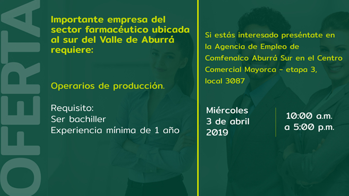 Importante Empresa del sector farmacéutico ubicada en el sur del valle de aburra requiere para su equipo de trabajo operarios de producción y sólo debes cumplir con los siguientes requisitos: