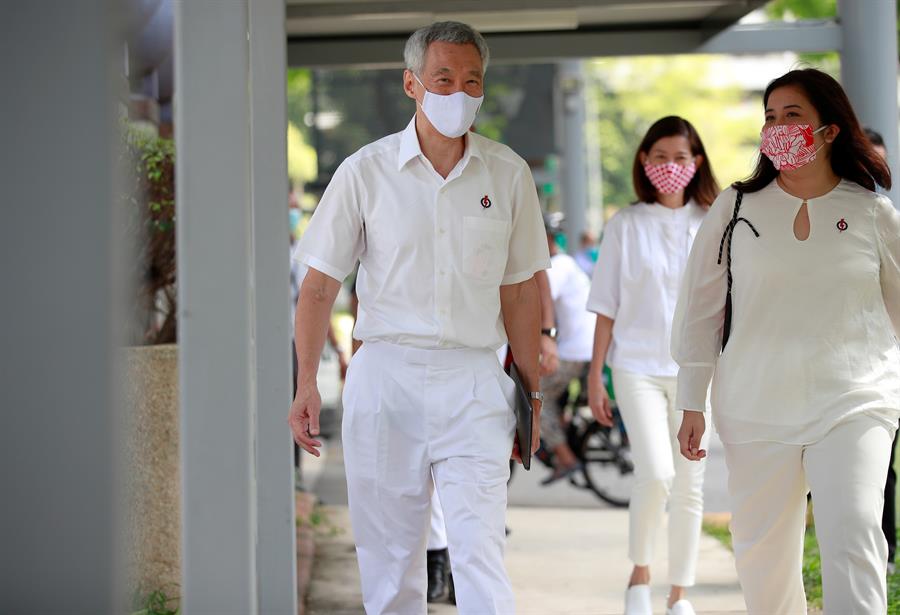 Lee Hsieng Loong, que lidera el Partido de Acción Popular, formación que ha ganado todas las elecciones desde la independencia de Singapur en 1965, llegó al centro acompañado de varios de sus correligionarios, todos con mascarillas.