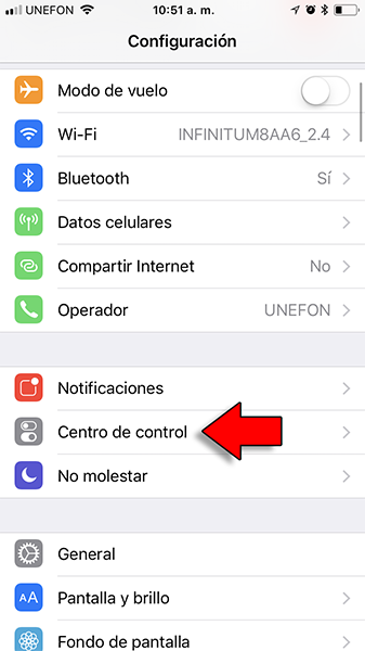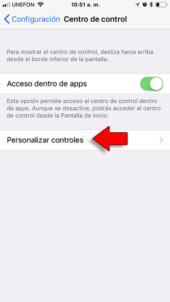 1. Abre ‘Ajustes’ y toca sobre ‘Centro de control – Personalizar controles’.