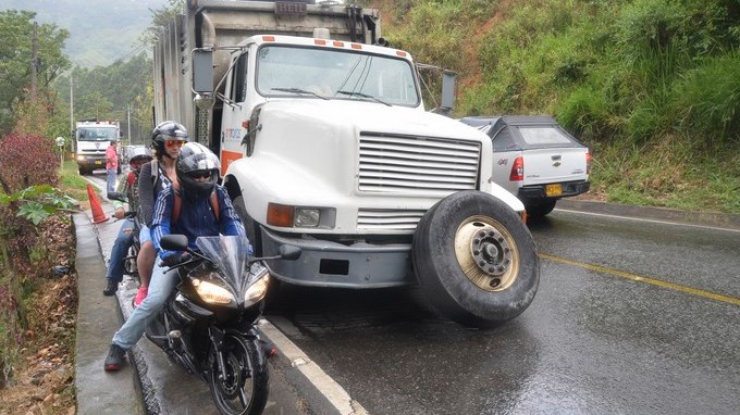 En la tarde de hoy miércoles santo se presentó un accidente de tránsito cuando un camión compactador de basuras, adscrito a EMVARIAS y que regresaba del relleno sanitario de La Pradera, perdió su llanta delantera izquierda lo que ocasionó una colisión múltiple al chocar con un ‘colectivo tipo taxi’ y con un vehículo de uso particular.