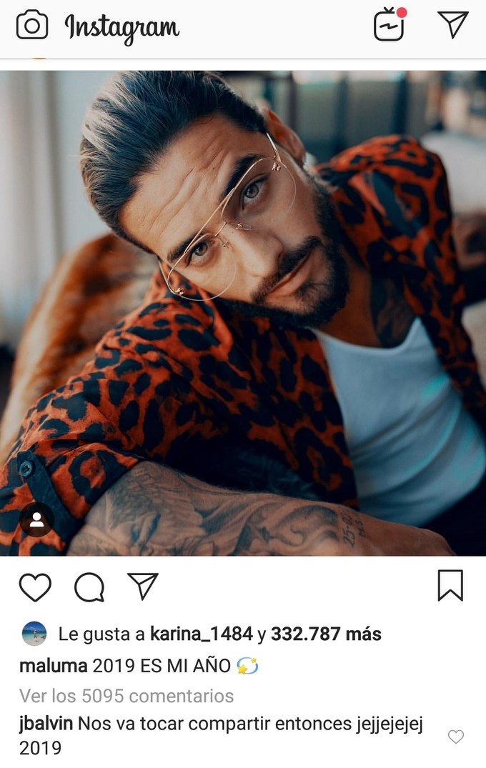 “2019 ES MI AÑO”, escribió Maluma a lo que ripostó Balvin “Nos va tocar compartir entonces jejejjje”.
