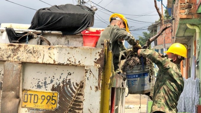 Ingenieros Militares del Batallón Baraya, unidad adscrita a la Sexta Brigada, iniciaron labores de remoción de escombros y desechos presentes en algunas viviendas de los barrios 7 de agosto y 20 de julio de Ibagué, producto de los deslizamientos originados por las fuertes lluvias ocurridas recientemente en la ciudad.