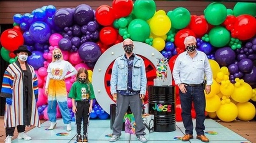 En compañía de su familia y amigos más cercanos celebró con tapabocas, máscaras, un enorme lisadero inflable, una gran mesa central llena de ponqués, pasabocas y champaña.