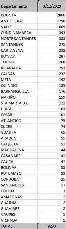 Estás son las cifras oficiales del covid-19 en Colombia, este 3 de diciembre: