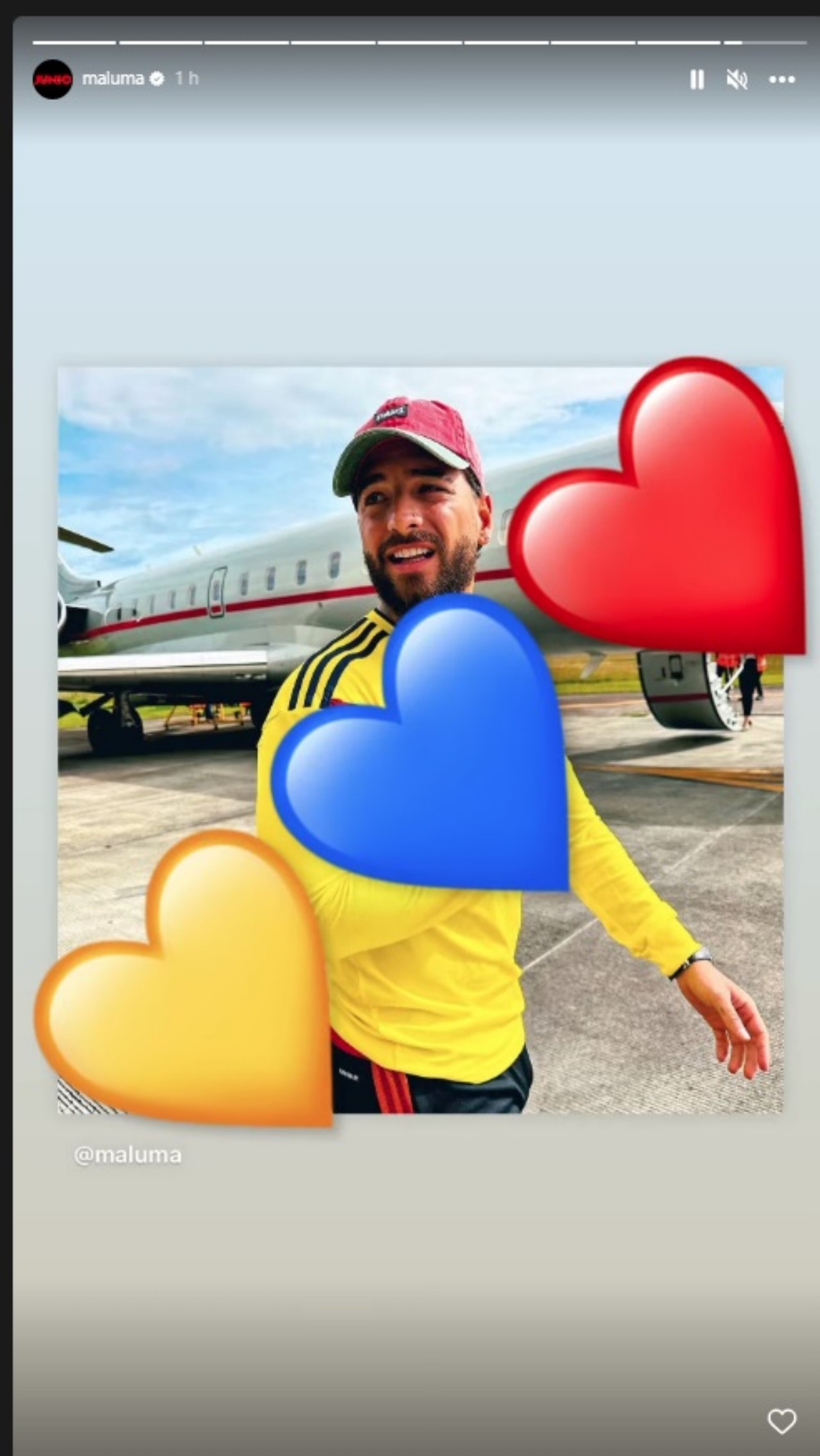 Por medio de su cuenta de Instagram, Maluma publicó tres fotografía en las que salía con la camisa de la Selección Colombia. Además, estaría dando a entender que pronto viajara a Doha, en una de las postales se ve de fondo su avión privado.