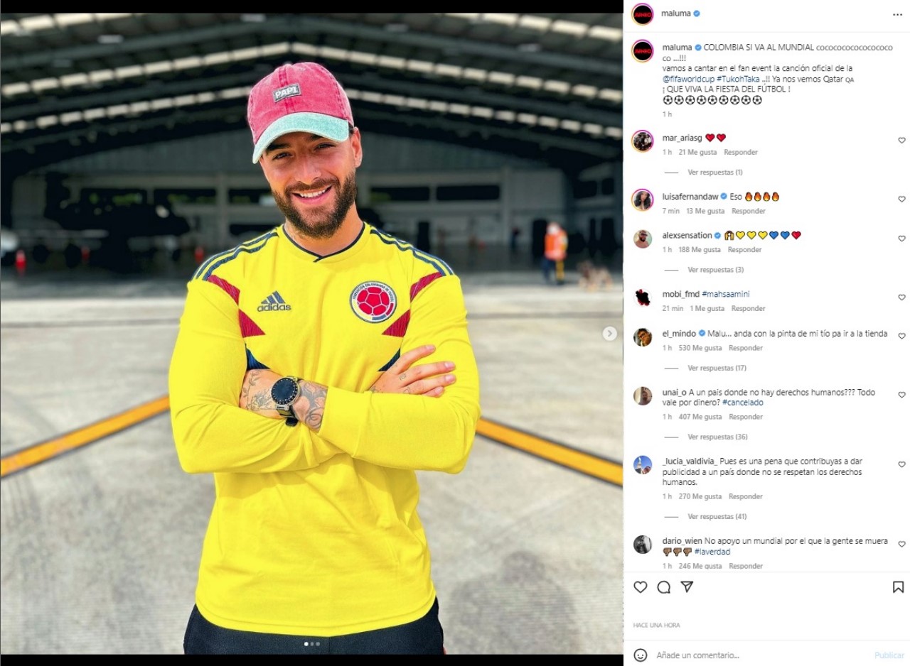 “Colombia, sí va al mundial, vamos a cantar en el Fan Evet la canción oficial de La FIFA, ya nos vemos en Qatar. ¡Que viva la fiesta del fútbol”, escribió Maluma en su último post.