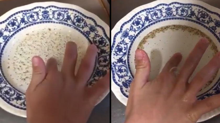 Para hacer de nuevo la prueba, el hombre le pidió que se levará las manos con agua y jabón, para luego ingresar el dedo limpio al plato donde estaban los ‘virus’ y el resultado ha sido impactante para algunos usuarios, todos los punticos negros se alejaron cuando el metió el dedo al plato.