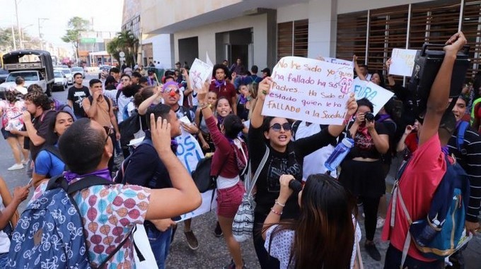 Los alumnos hicieron un plantón donde un grupo de mujeres se pusieron una pañoleta de color morado que representa la lucha contra el abuso sexual en las afueras de la Gobernación del departamento donde se discute el futuro del rector de la institución, Carlos Prasca Muñoz, al cual cada vez le crece más las denuncias de acoso sexual.