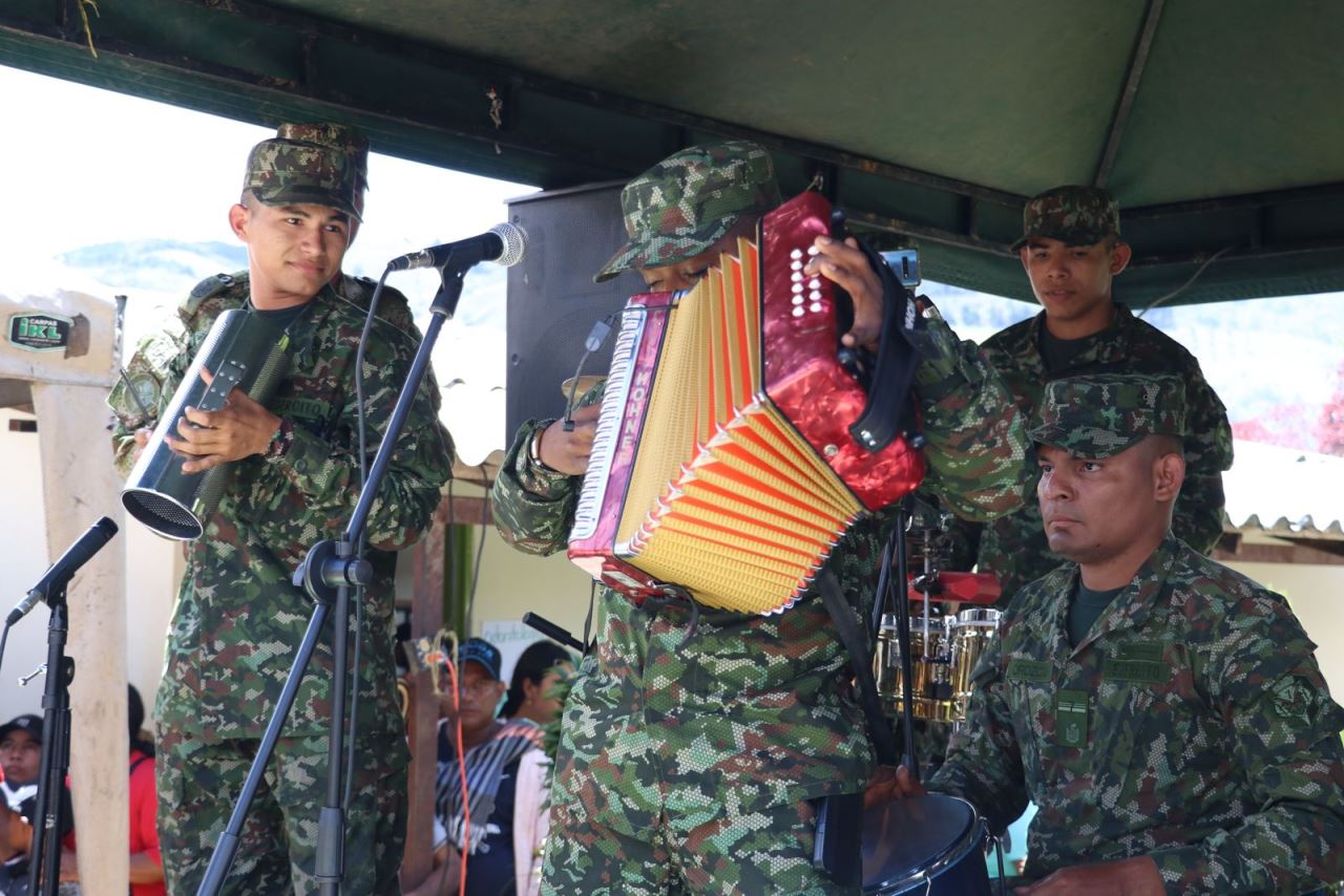 Esta exitosa jornada contó con atención en medicina integral, entrega de medicamentos, donación de ropa y asesoría jurídica no solo para los habitantes de la vereda El Romeral, sino de zonas aledañas, quienes también tuvieron la oportunidad de acceder a dichos servicios. Por otro lado, el Ejército Nacional complementó la jornada con entretenimiento, incluyendo las herramientas de acción integral como el grupo musical Nota 7, las pintucaritas, la globoflexia, la crispetera y la algodonera, haciendo del evento un día de salud y alegría para todos los asistentes.