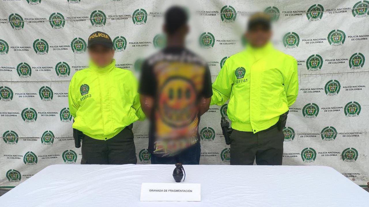En el momento de la captura le fue encontrado en su poder una granada IM-26 de fragmentación, elemento de uso privativo de las Fuerzas Militares.