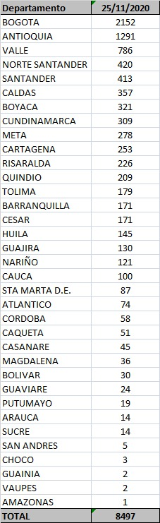 Estás son las cifras oficiales del covid-19 en Colombia, este 25 de noviembre: