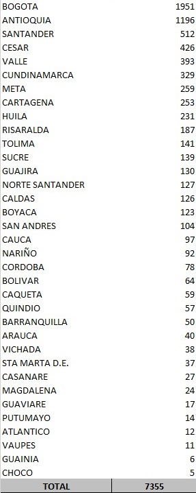 Con más de 6.500 recuperados, Colombia reportó este domingo 7.355 nuevos casos de covid-19