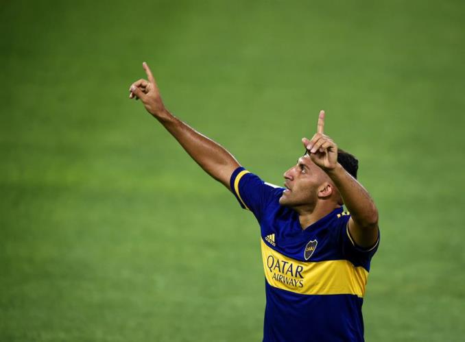 El delantero Ramón Ábila de Boca Juniors celebra su gol ante River Plate hoy, durante un partido del Grupo A de la Copa Diego Armando Maradona entre ambos equipos, disputado en el estadio Alberto José Armando ‘La Bombonera’, en Buenos Aires (Argentina). EFE/ Marcelo Endelli POOL