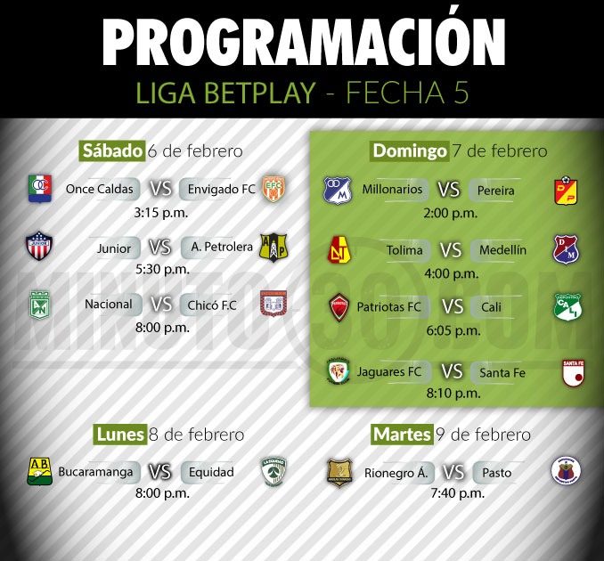 Programación completa fecha 5 de la Liga BetPlay I-2021