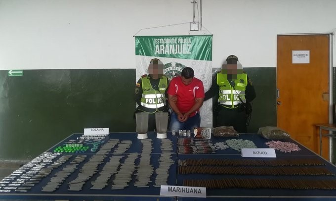 Según detallaron las autoridades al sujeto se le halló un kilo y 650 cigarrillos de marihuana, 337 dosis de bazuco y 97 dosis de cocaína.