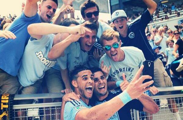 El delantero del Sporting Kansas City de la MLS, Dom Dwyer, festejó un gol que le convirtió al Chicago Fire, tomándose una selfie con los aficionados que se encontraban en las gradas