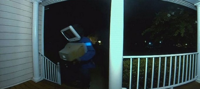 Un hombre con una televisión en la cabeza que deja monitores antiguos en las puertas de las casas tiene asombrados a los vecinos de una localidad de Virginia. pic.twitter.com/THXqhFg0Od