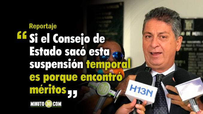 Dijo también el concejal que el fallo obedece a la demanda presentada por el Gobernador de Antioquia Luis Pérez Gutiérrez y a las denuncias que él ha presentado desde un inició sobre dichas irregularidades, y agregó que si el Consejo de Estado sacó esta suspensión temporal es porque encontró méritos de fondo para efectos futuros.