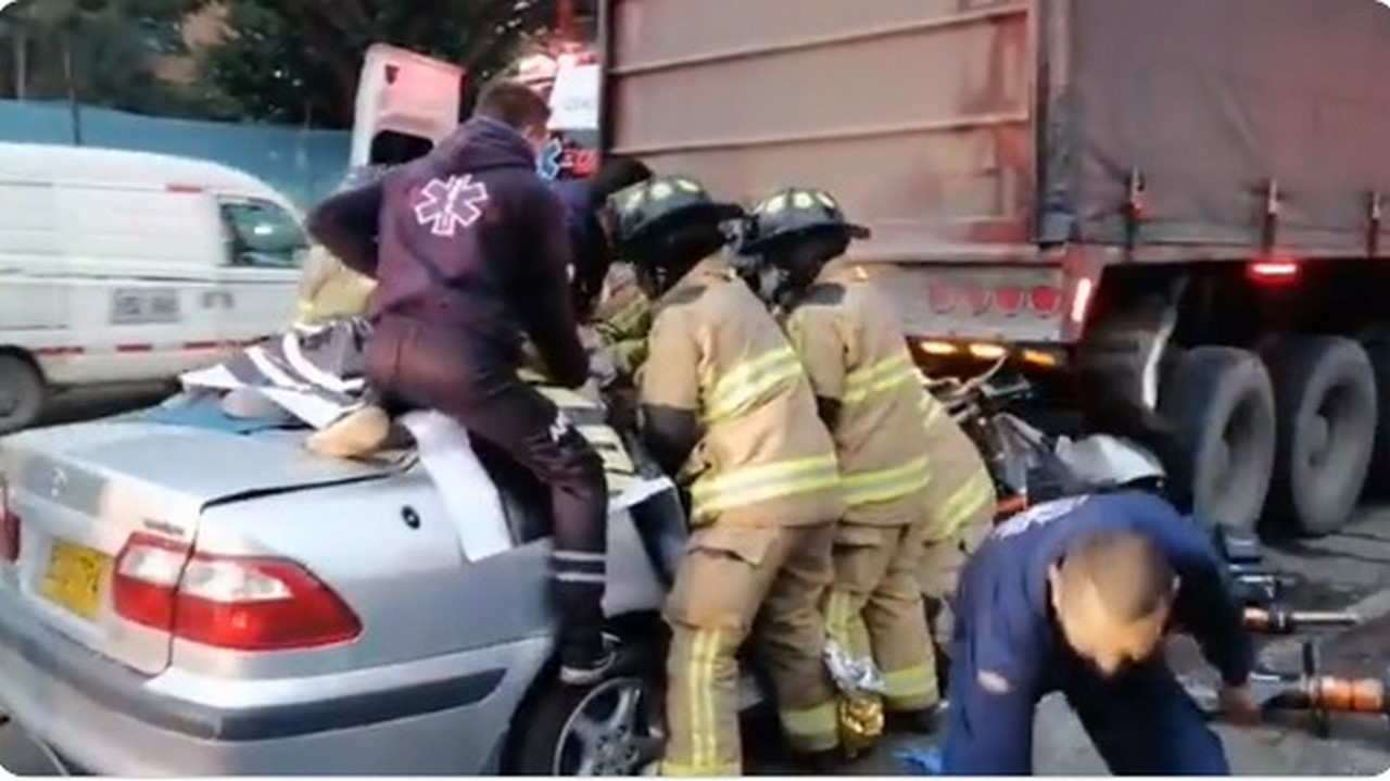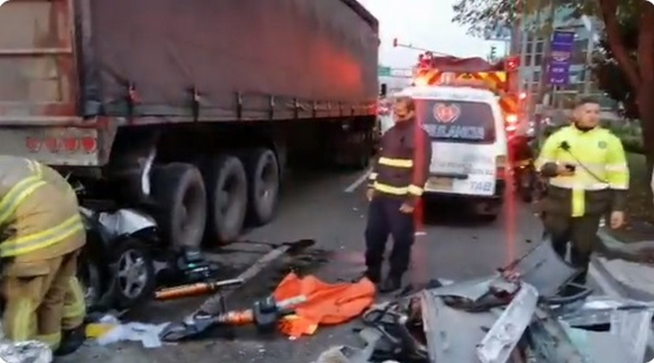 En el sentido oriente- occidente de la calle 127 con avenida Villas, el conductor de un vehículo particular impactó con una tractomula y quedó debajo del camión.