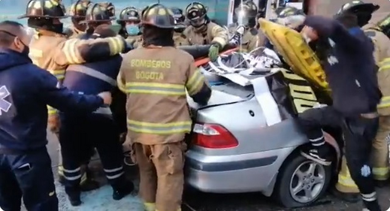 🚒 #ACCIDENTE En compañía del Equipo Técnico de Rescate se logró rescatar y brindar atención prehospitalaria a dos personas que quedaron atrapadas por la colisión que se presentó entre un vehículo particular y un tractocamión en la calle 127 con carrera 58. pic.twitter.com/W2gm7Ni3dE