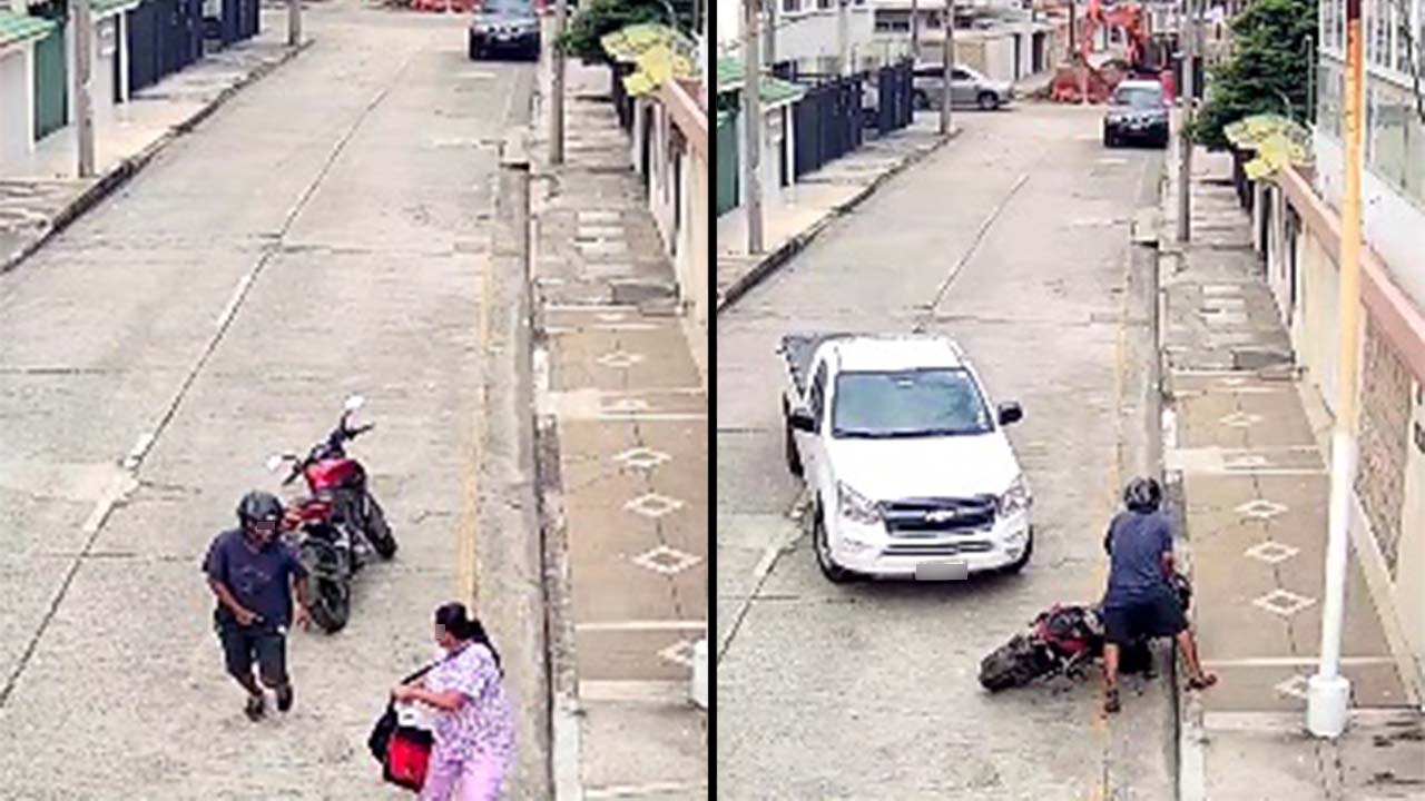 En video de cámara de seguridad quedó el momento exacto en el que un ladrón es arrollado por el conductor de una camioneta, quien se percató de lo que estaba en una calle de Guayaquil, Ecuador.