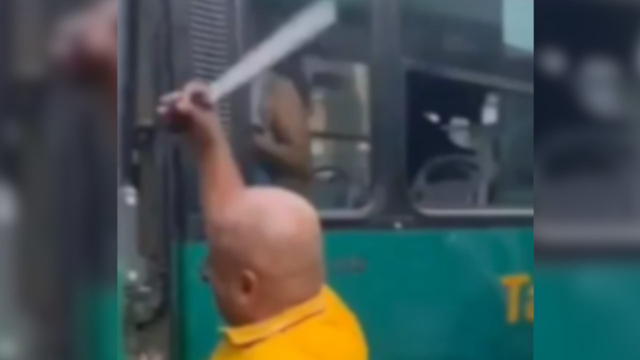 El hecho de intolerancia fue registrado en video, cuando el conductor de bus se bajó con el arma blanca, y abrió la puerta del otro vehículo.