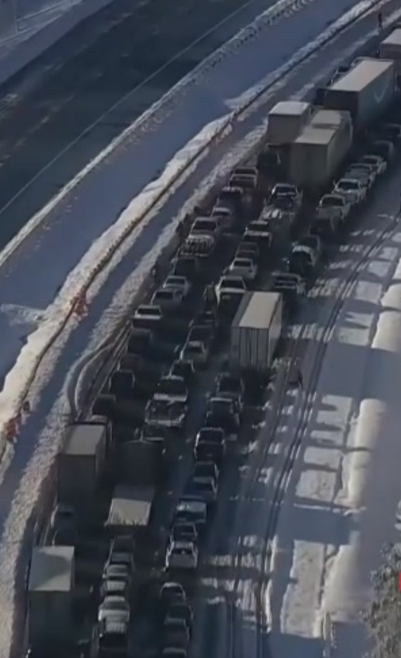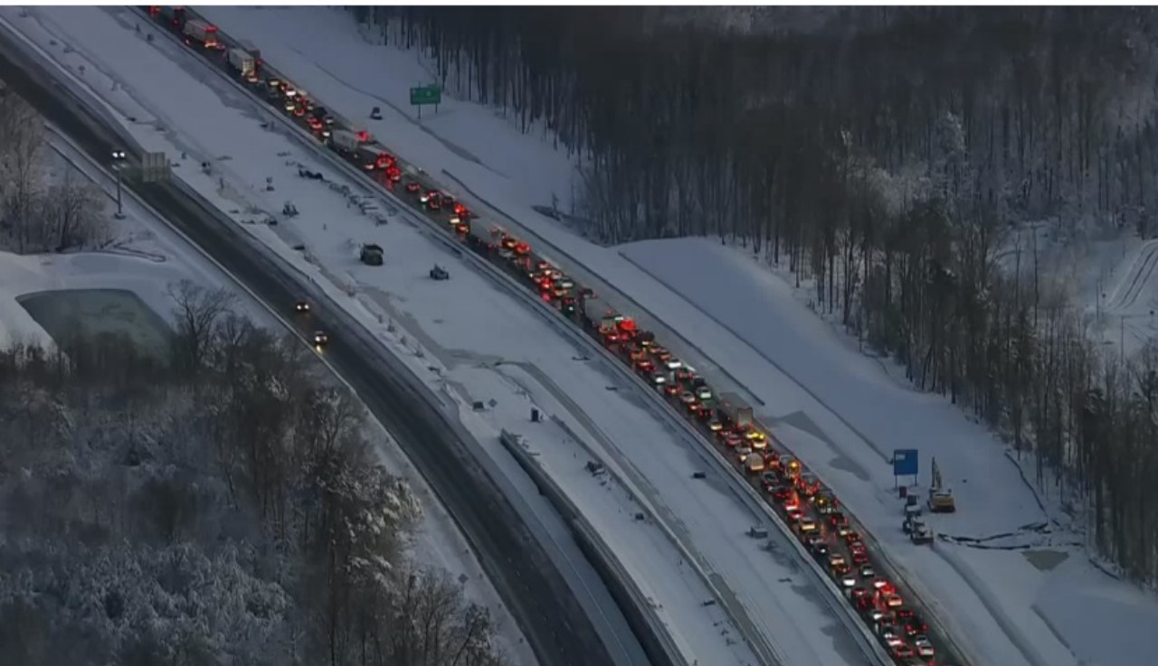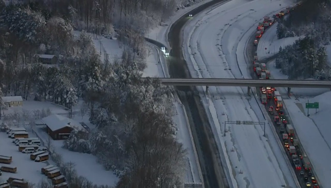 Conductores llevaban más de 20 horas varados este martes en el condado Stafford, en Virginia, tras el cierre de la autopista a consecuencia de un choque de varios camiones y una intensa nevada que dejó las carreteras cubiertas de hielo.