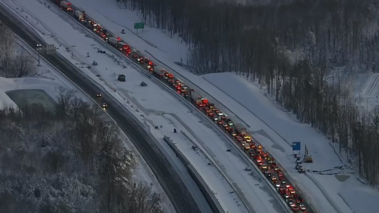 Conductores llevaban más de 20 horas varados este martes en el condado Stafford, en Virginia, tras el cierre de la autopista a consecuencia de un choque de varios camiones y una intensa nevada que dejó las carreteras cubiertas de hielo.