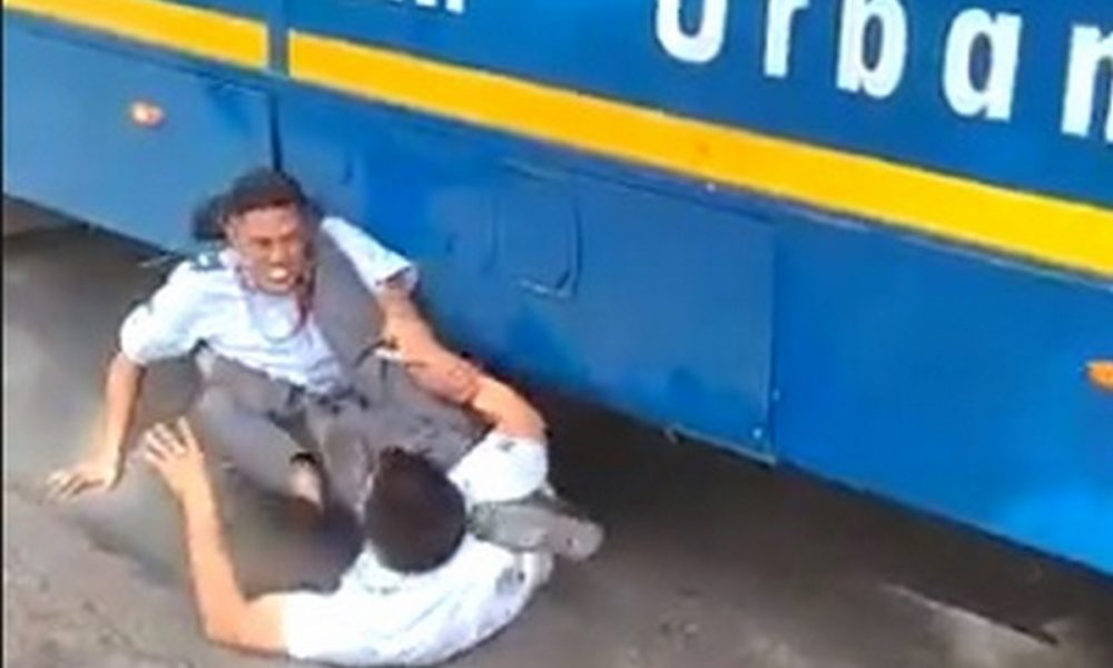 Se desconoce el motivo por el cual los dos conductores se dieron ‘duro’ y hasta se tiraron al suelo. En la grabación se ve como un sujeto, que al parecer sería un motociclista, decide intervenir en la pelea. Los hombres se sueltan y se miran con rabia, mientras se alejan se insultan.