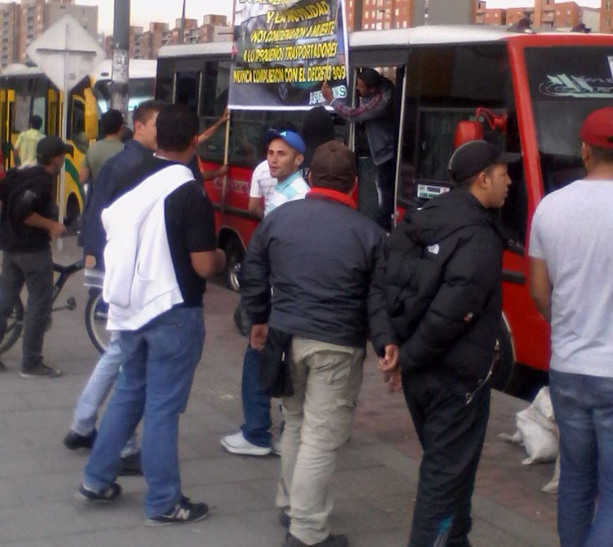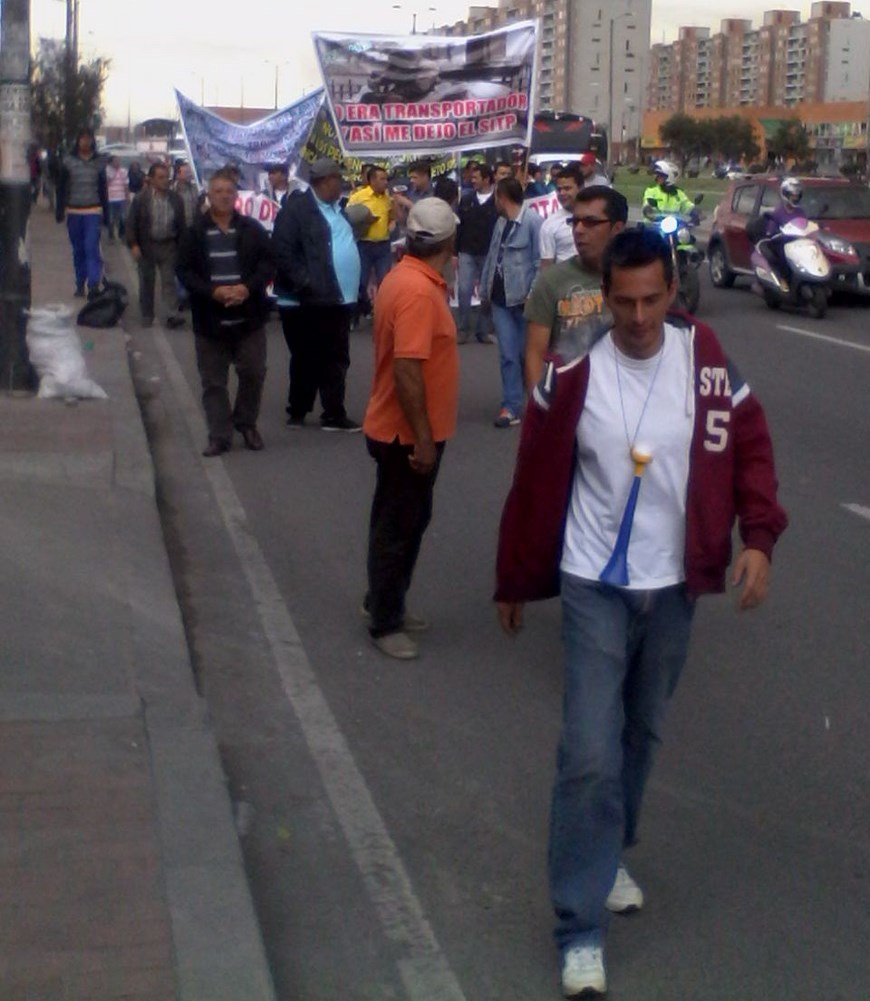 Con pancartas alusivas apoyando el paro un centenar de conductores de diferentes empresas de la capital marcharon pacíficamente por la avenida de las Américas escoltados por un escuadrón del ESMAD ,que estuvo muy pendiente de su accionar.