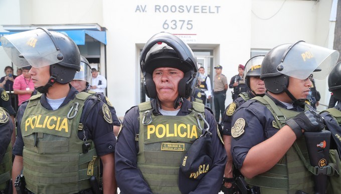 Policías peruanos custodian el centro asistencial donde atienden a Alan García