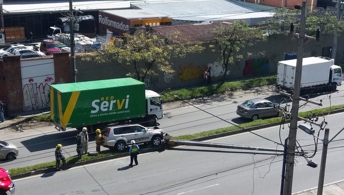 Según el reporte ciudadano, un vehículo derribó un poste de energía. Por ahora no se reportan lesionados, pero sí gran congestión en la vía.