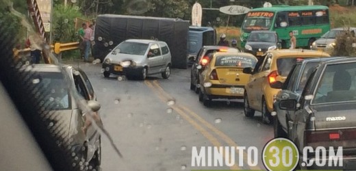 Un camión que esta tarde se movilizaba por la Loma del Escobero en Envigado terminó volcado sobre esa vía. El hecho, que no dejó personas lesionadas, generó congestión vehicular en el sector.
