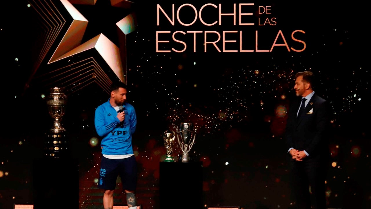 Domínguez, quien pidió ser el vocero de la gente, dedicó trinos y palabras sentidas a la selección vestida de azul y blanco que seguía desde la primera fila el acto que arrancó con imágenes de videos, un juego de luces y el sonido de violines.