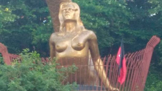 Una bandera del ELN, que amaneció instalada cerca de la escultura de la ‘Sirena Vallenata’, en el principal sitio turístico en Valledupar, generó alarma.