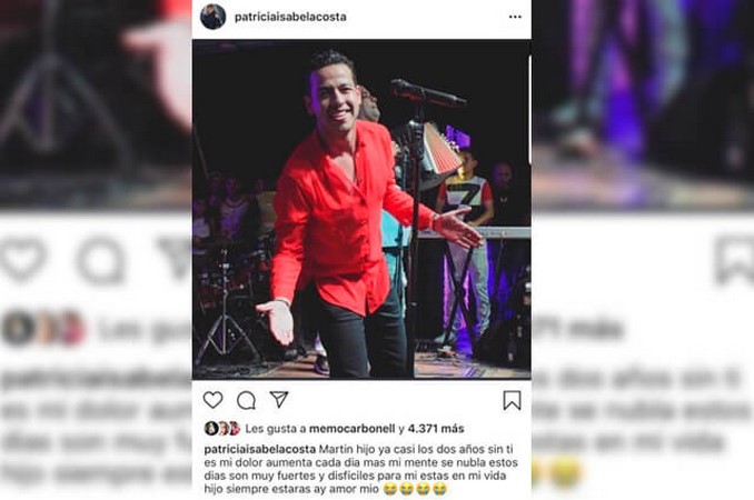 La madre escribió junto a una imagen sonriente del difunto cantante: ‘‘Martín, hijo, ya casi los dos años sin ti, mi dolor aumenta cada día más, mi mente se nubla, estos días son muy fuertes y difíciles para mí, estás en mi vida, hijo, siempre estarás, ay amor mío’’.