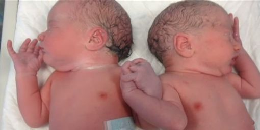 La tierna imagen fue captada pocos minutos luego de nacer los bebés: Dos mellizos recién nacidos unen sus manos como primer gesto de hermandad y compañerismo