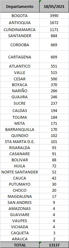 104.196 casos activoshttps://t.co/SiKTpTCQ3W pic.twitter.com/JiMe4SUAQu— MinSaludCol (@MinSaludCol) May 18, 2021