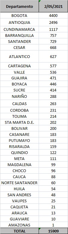108.781 casos activoshttps://t.co/SiKTpTCQ3W pic.twitter.com/c6eEs0GqjS— MinSaludCol (@MinSaludCol) May 2, 2021