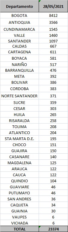 122.566 casos activoshttps://t.co/SiKTpTCQ3W pic.twitter.com/dIu06bHPrP— MinSaludCol (@MinSaludCol) May 28, 2021