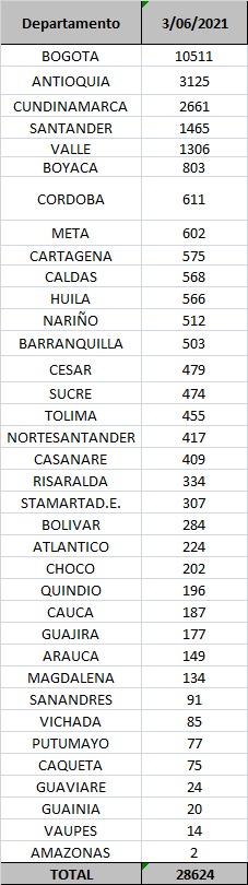 144.466 casos activoshttps://t.co/SiKTpTCQ3W pic.twitter.com/wjScCimIE9— MinSaludCol (@MinSaludCol) June 3, 2021