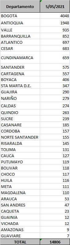 93.939 casos activoshttps://t.co/SiKTpTCQ3W pic.twitter.com/7jjSsGSeEn— MinSaludCol (@MinSaludCol) May 5, 2021