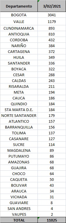 75.722 casos activoshttps://t.co/SiKTpTCQ3W pic.twitter.com/hNU4vDY7bV— MinSaludCol (@MinSaludCol) February 3, 2021