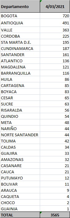 34.426 casos activoshttps://t.co/SiKTpTCQ3W pic.twitter.com/jOMDjJQTWu— MinSaludCol (@MinSaludCol) March 4, 2021