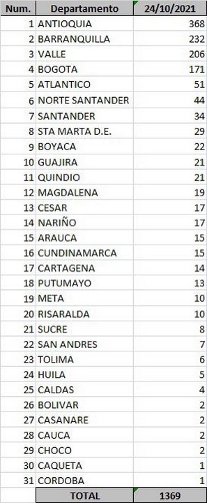 El Ministerio de Salud informó la cifra de personas contagiadas de Covid-19 en Colombia, y este domingo 24 de octubre se reportaron 1.369 nuevos contagiados, sin embargo, 1.341 personas le ganaron la batalla al virus.