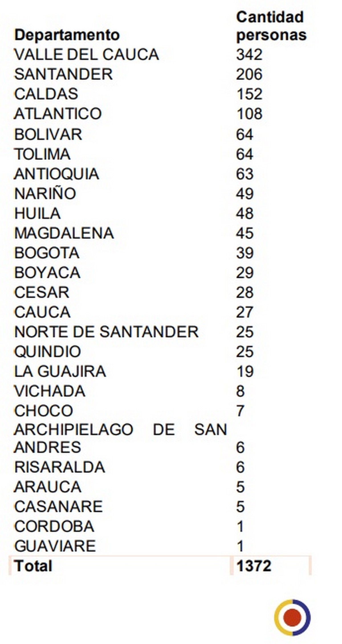 Los departamentos en los que la DIARI identificó este grupo de personas no priorizadas son: