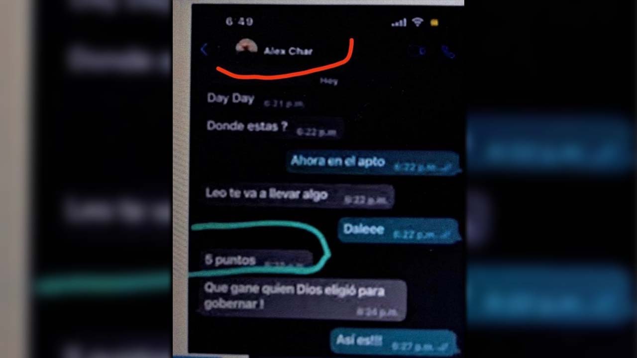 Entre las pruebas presentadas por el fiscal Mario Burgos, está el chat donde se menciona el nombre del actual candidato a la Alcaldía de Barranquilla, Alejandro Char, en el que hacía referencia a “5 puntos”.