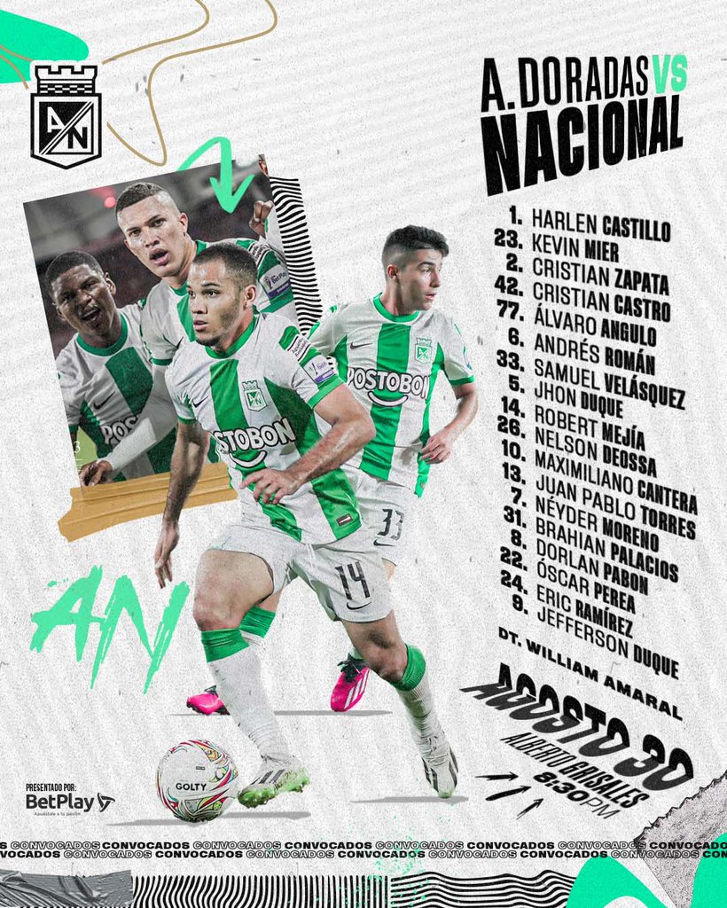 Por su parte Águilas Doradas confirmó que para el compromiso fueron convocados José Contreras, Juan valencia, Jeisson Quiñones, Mateo Puerta, José Cuenú, Danovis Banguero y Jesús Rivas.
