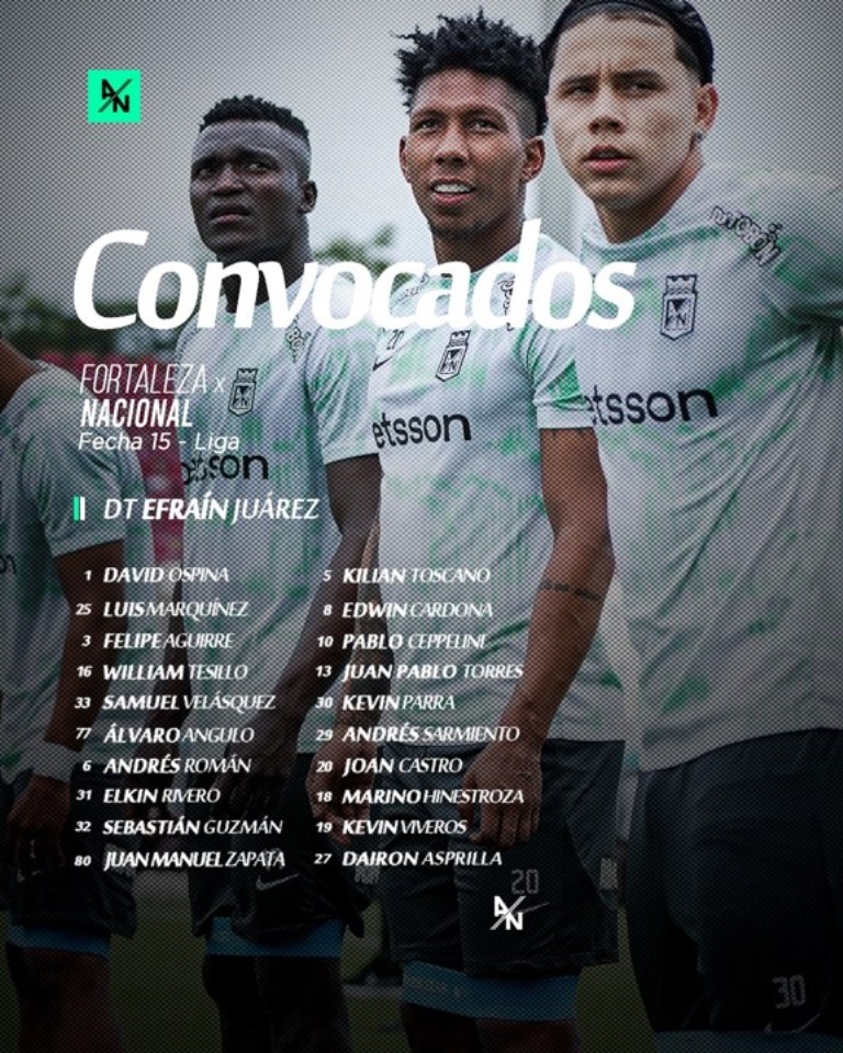 Resumen: Atlético Nacional visita a Fortaleza con nómina confirmada para la fecha 15 de la Liga BetPlay